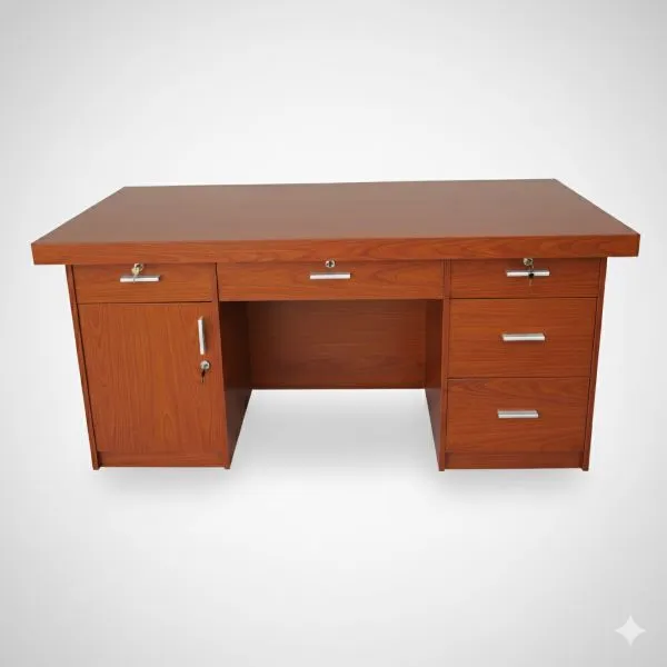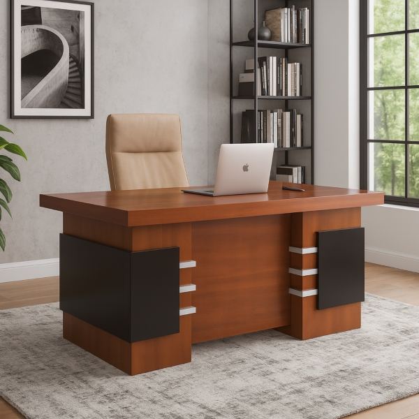 Bàn giám đốc BNGD01 là mẫu bàn làm việc với mặt trước có kiểu dáng bắt mắt. Bàn có 5 hộc kéo và 1 tủ giúp lưu trữ hồ sơ thoải mái.